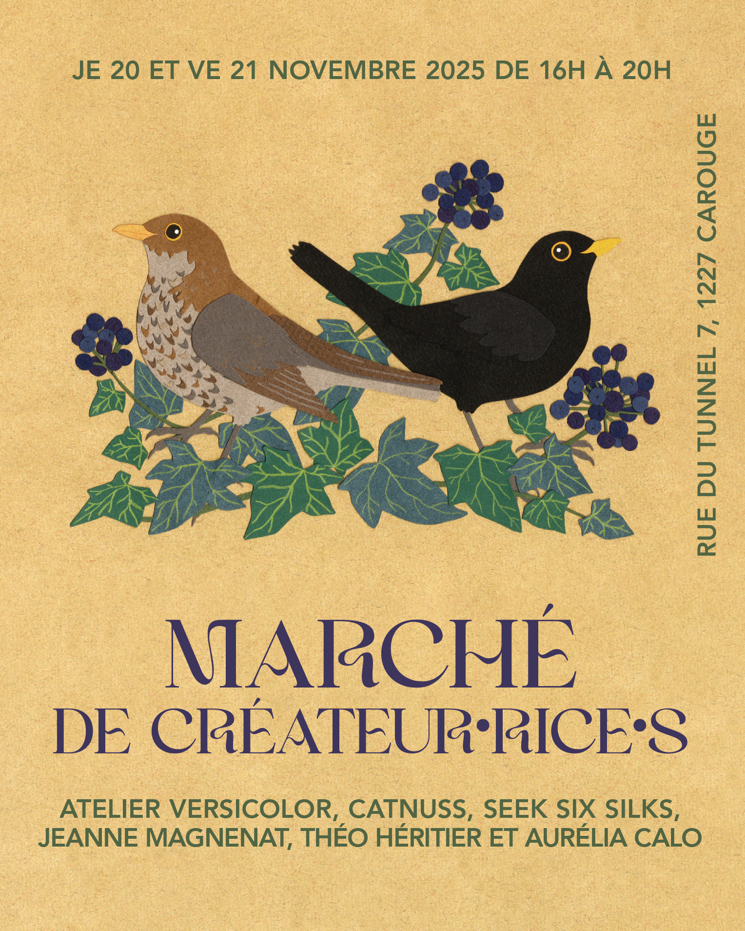 Venez découvrir notre atelier et nos créations le 20 et 21 novembre à Carouge ! LE MARCHÉ DE CRÉATEUR·RICE·S a lieu dans l’espace de travail TUNNEL 7, situé au rez-de-chaussée d’une ancienne imprimerie, au cœur de Carouge, Genève. TUNNEL 7 […]